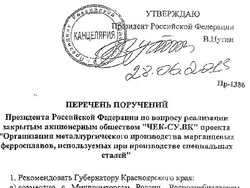 В документе указывалось, что в случае положительного исхода резолюции экспертов, до 1 ноября региональные власти должны подписать соглашение с инвесторами, компанией "ЧЕК-СУ.ВК" и ВЭБом. Глава региона перенаправил поручение президента о новой экспертизе в Гражданскую Ассамблею края, а общественники определили в качестве экспертов Красноярский научный центр СО РАН. Однако сама экспертиза так и не была проведена, поскольку инвестор отказался ее оплачивать, обвинив красноярских ученых в ангажированности.